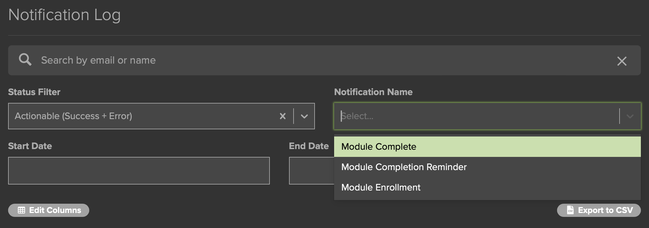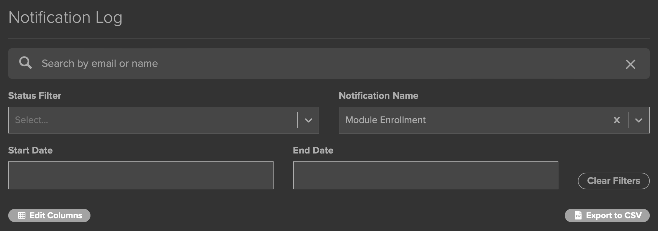 The Notification Log (Fig. 16) is a powerful tool that allows you to view or export data that shows which Users have had automated Notifications sent to them.