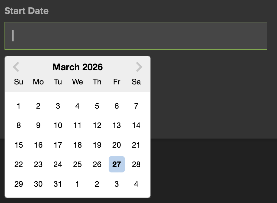 To filter the results by a date range, click in the Start Date field and select a date (Fig. 18), then click in the End Date field (Fig. 20) and select an End Date.